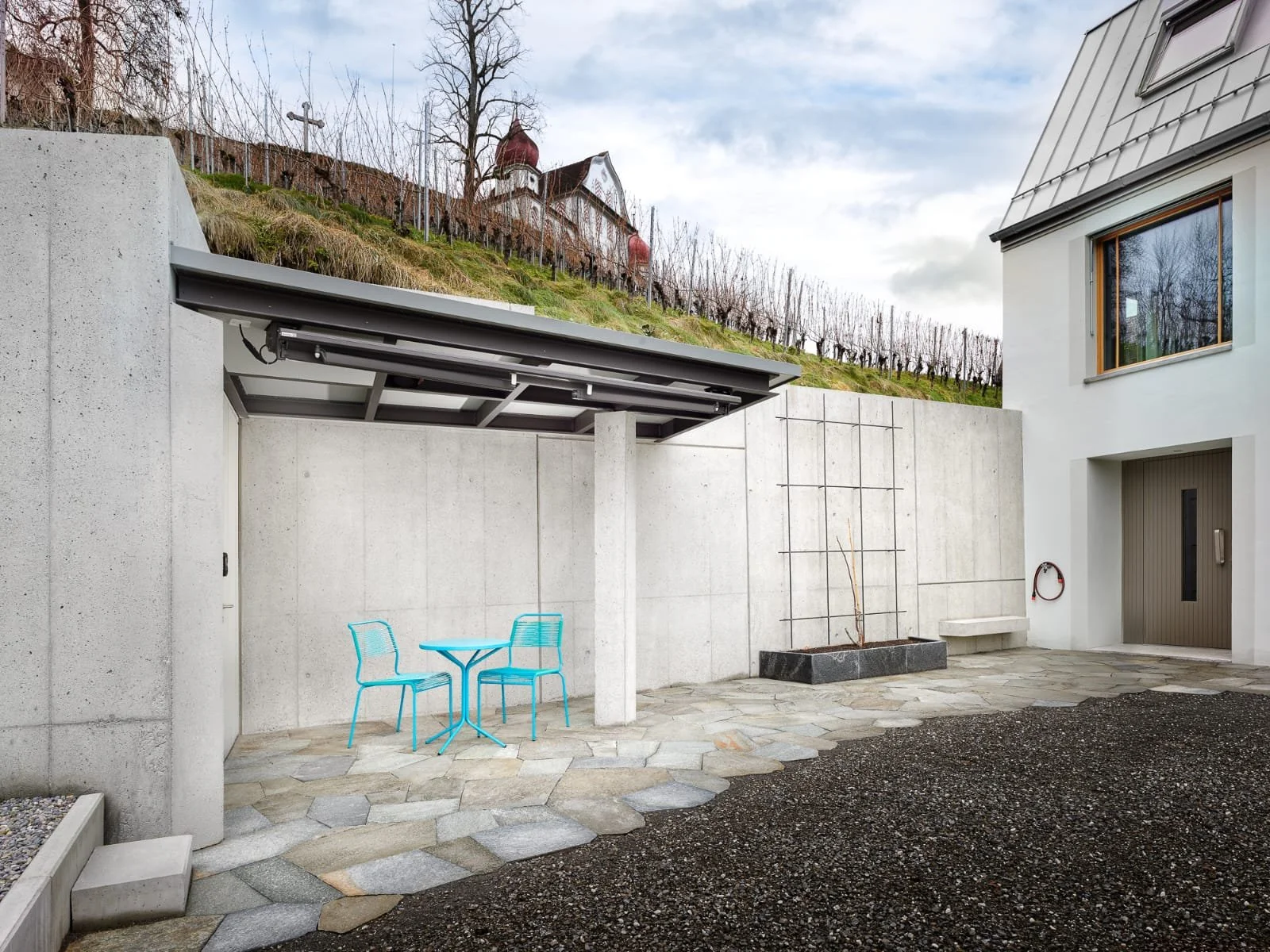 Planung und Ausführung der Dachkonstruktion und dem Rankgitter, gemäss Vorgaben des Architekten.
